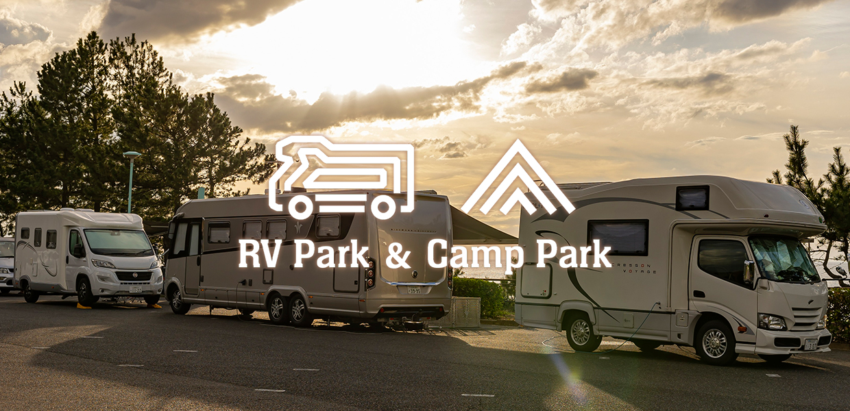 海が見える広い駐車場の一角に、キャンピングカー対応の【RVパーク】が誕生!